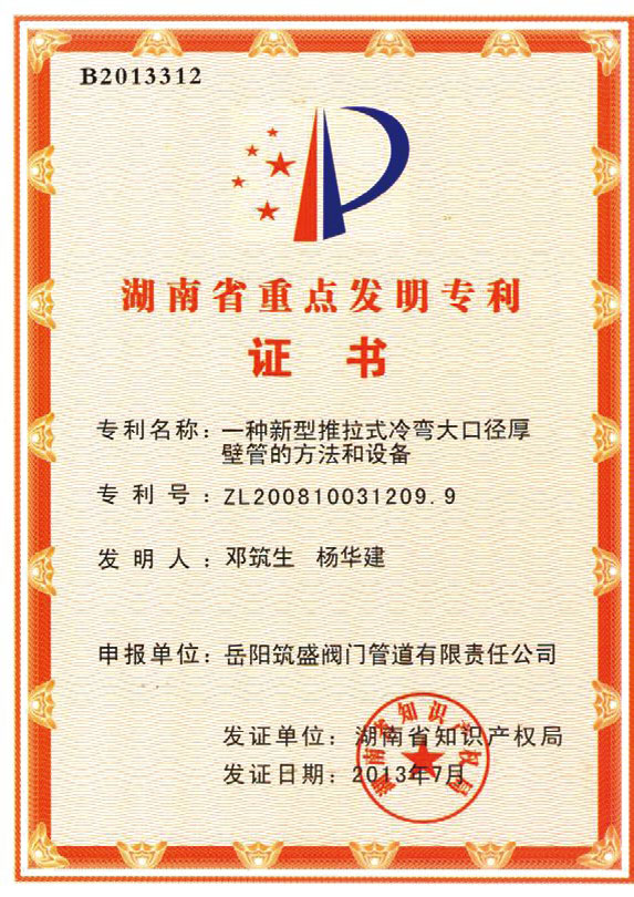 湖南省重點發(fā)明專利證書