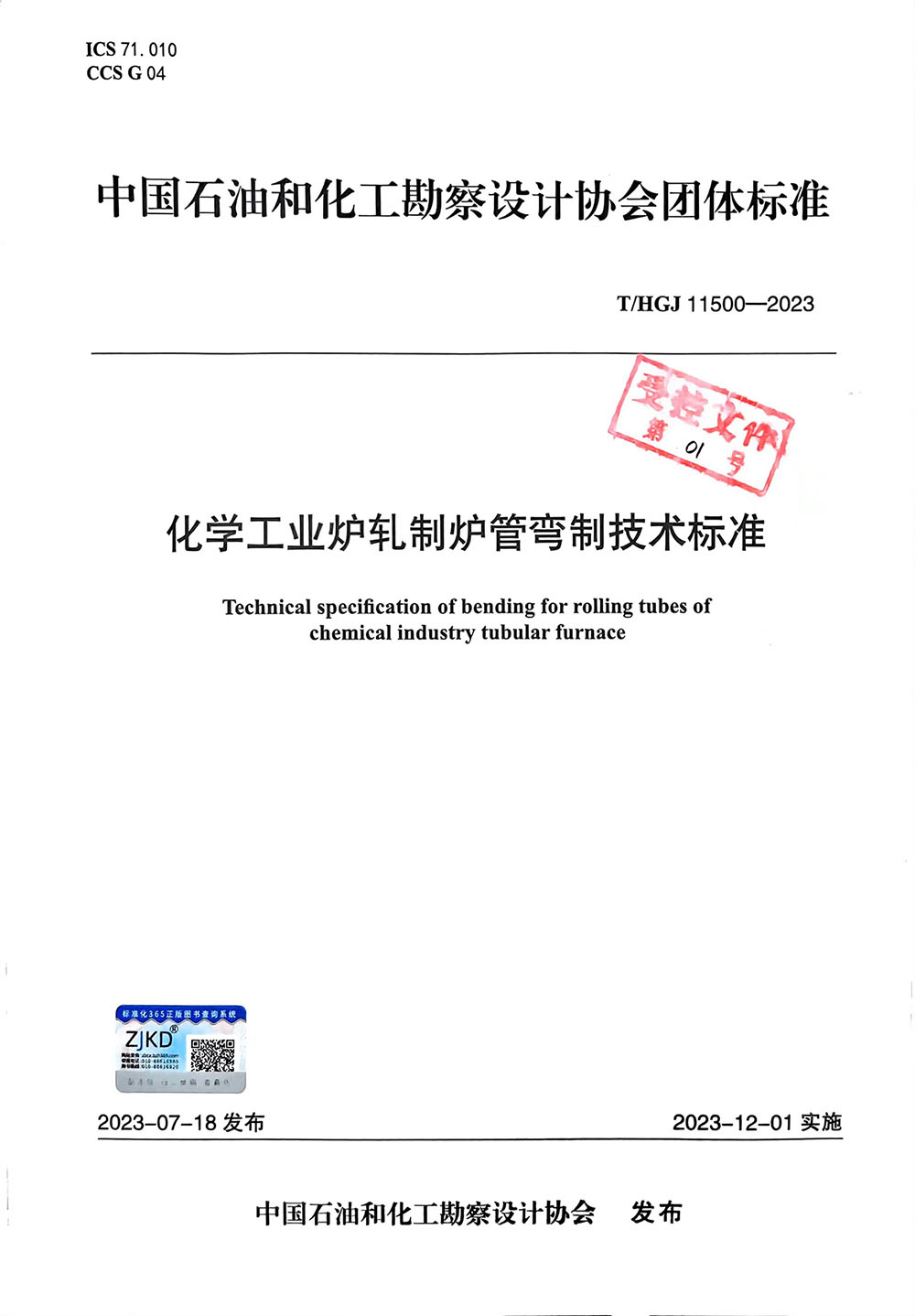 岳筑宣2023年12月6日訊:由我公司主編的石油和化工勘察設計團體標準已正式發(fā)布,標準號T/HGJ 11500-2023;標準名稱《化學工業(yè)爐軋制爐管彎制技術標準》