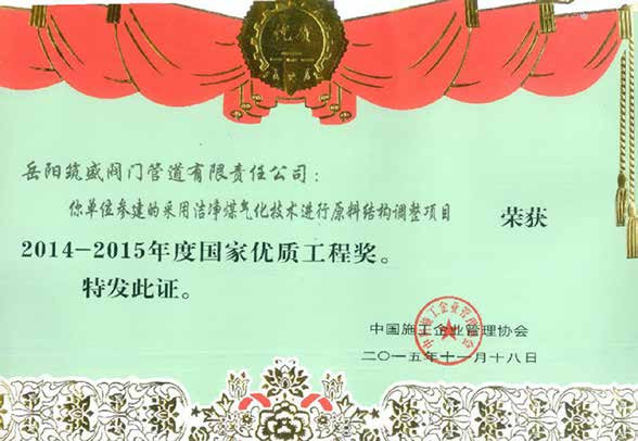 河南心連心化肥有限公司采用潔凈煤氣化技術(shù)進(jìn)行原料結(jié)構(gòu)調(diào)整項(xiàng)目尿素裝置高 壓管道采用推拉式冷彎發(fā)明專(zhuān)利技術(shù)實(shí)施管道工廠化施工榮獲國(guó)家優(yōu)質(zhì)工程獎(jiǎng)