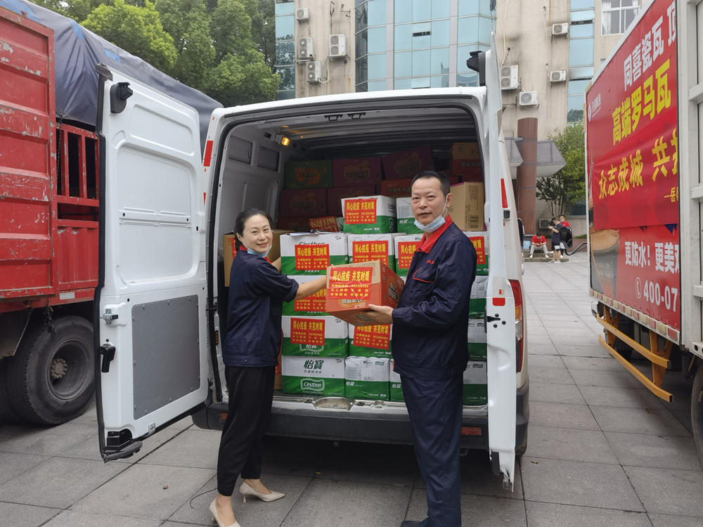 圖為:岳陽(yáng)筑盛閥門管道有限責(zé)任公司董事長(zhǎng)鄧晴正在搬運(yùn)捐贈(zèng)物資。