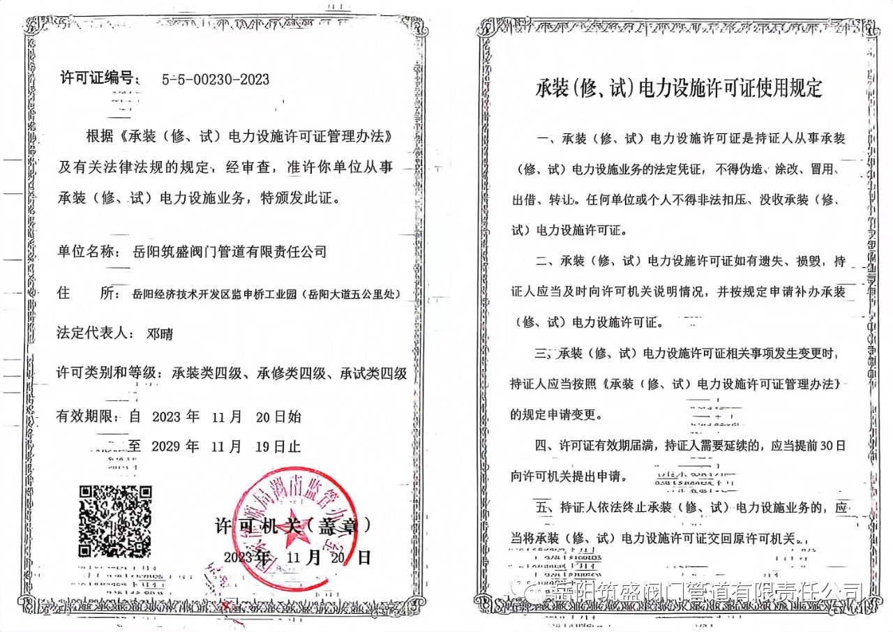 岳筑宣2023年12月12日訊:熱烈祝賀我公司“承裝(修、試)電力設(shè)施許可證”取證成功!